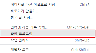 2. <확장 프로그램>을 누른다. 그러면 지금 크롬에 설치되어 있는 크롬 전용 '확장 프로그램'이 모두 보일 것이다.
