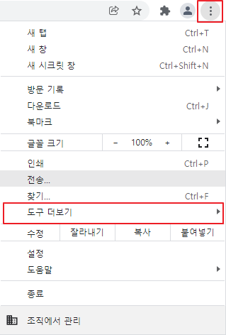그리고 <도구 더보기>메뉴를 클릭한다.