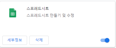 3. 구글 크롬 스프레드시트가 설치되어 있다면 위처럼 '스프레드시트'라는 확장 프로그램이 설치되어 있을 것이다. 이제 실행시키면 된다.